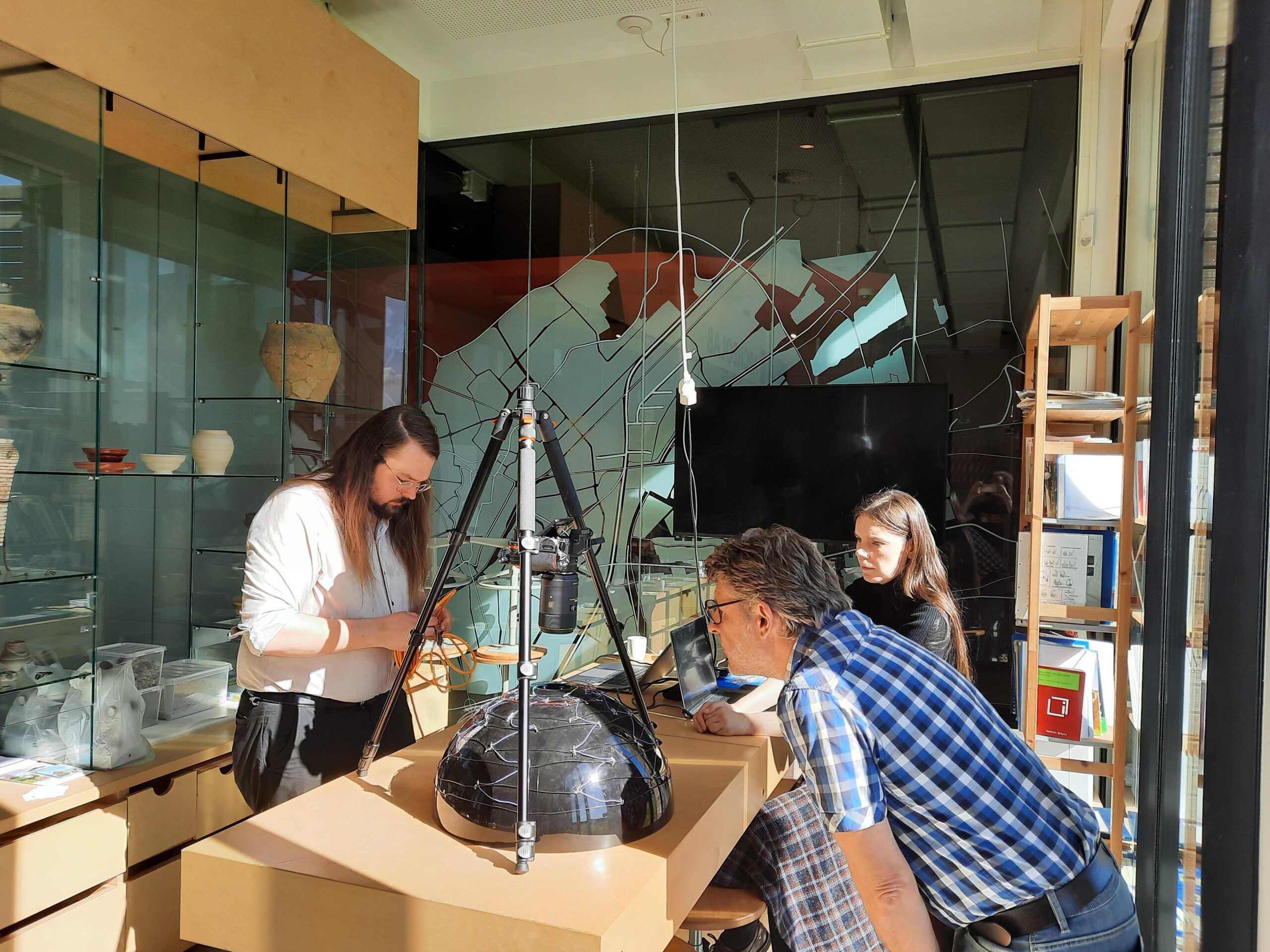 Deze blog is geschreven door Léon Coret. Afgelopen vrijdag 29 augustus kwamen onze UU-collega’s Sjors Nab en Christien Schrover van Kunstgeschiedenis langs op Castellum Hoge Woerd om met hun RTI-Dome prachtig gedetailleerde foto’s te maken van Romeinse munten die binnen C-Limes onderzocht worden.